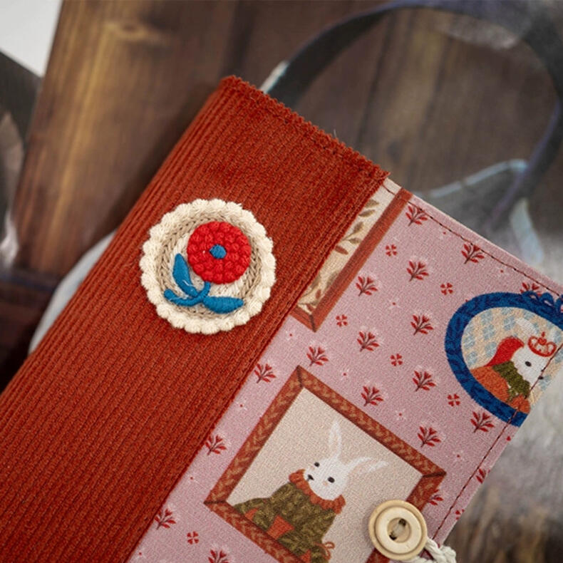 Vantage Corduroy Patchwork Journal Embroidered Flower Notebook A6 A5 Cute Bunny Fabric Notepad Refillable Traveler's Notebook Holiday Gift