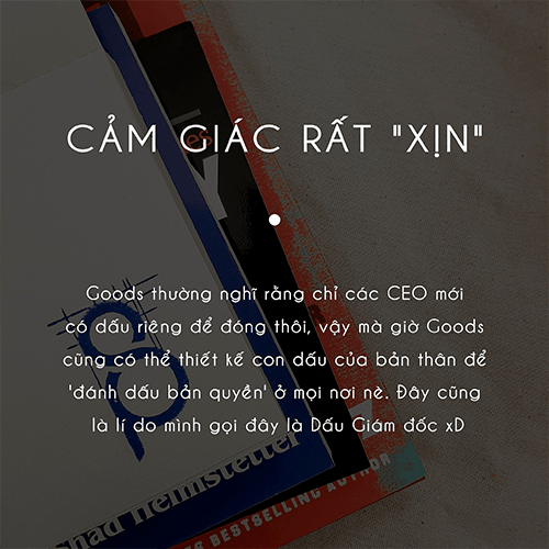 Bản thân Goods là một người thích đồ trang trí, dấu nào Goods cũng có, từ dấu wax, dấu nổi hay dấu gỗ. Nhưng lựa chọn con dấu cán nhựa để làm rộng rãi, Goods nhận ra được những ưu điểm vượt trội hơn về: