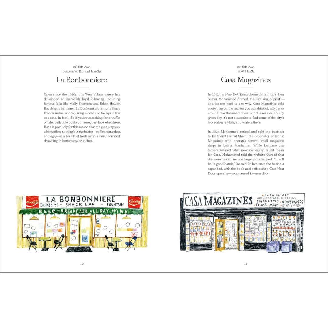 This book showcases 225 of his delightful illustrations and runs the gamut, from delis and bodegas to dive bars, bookstores, bakeries, newsstands, cafés, restaurants, and more. Each image is paired with engaging text written by journalist David Dodge and filled with the historical, cultural, and architectural details that have earned these stores a place in people’s hearts.