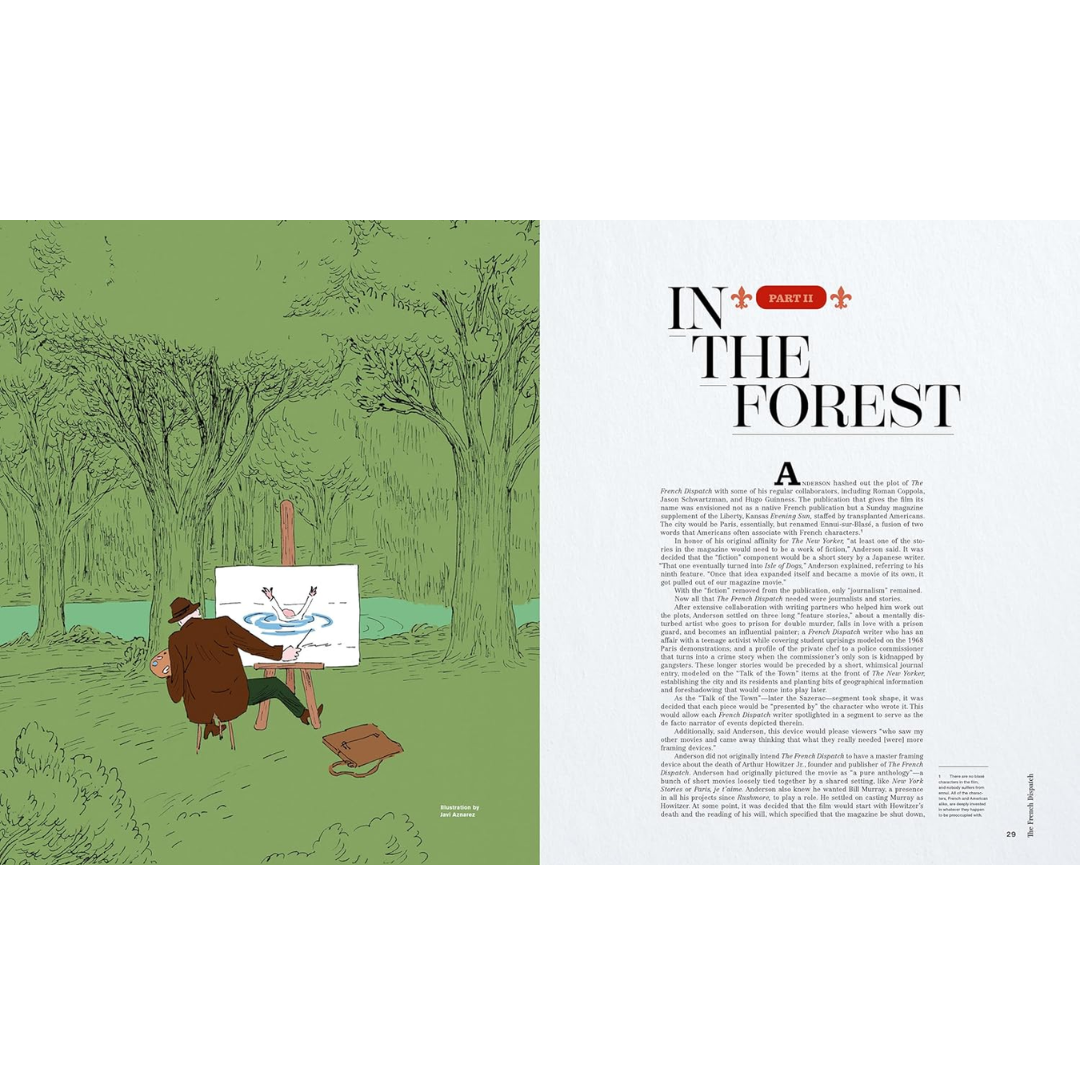 The official behind-the-scenes companion to The French Dispatch and the latest volume in the bestselling Wes Anderson Collection series The French Dispatch —the tenth feature film from writer-director Wes Anderson—is a love letter to journalists set at the titular American newspaper in the fictional 20th-century French city of Ennui-sur-Blasé. The film stars a number of Anderson's frequent collaborators, including Bill Murray as the newspaper's editor in chief; Owen Wilson, Tilda Swinton, and Frances McDormand, as well as new players Jeffrey Wright, Benicio del Toro, Elisabeth Moss, and Timothée Chalamet, who bring to life a collection of stories published in The French Dispatch magazine.